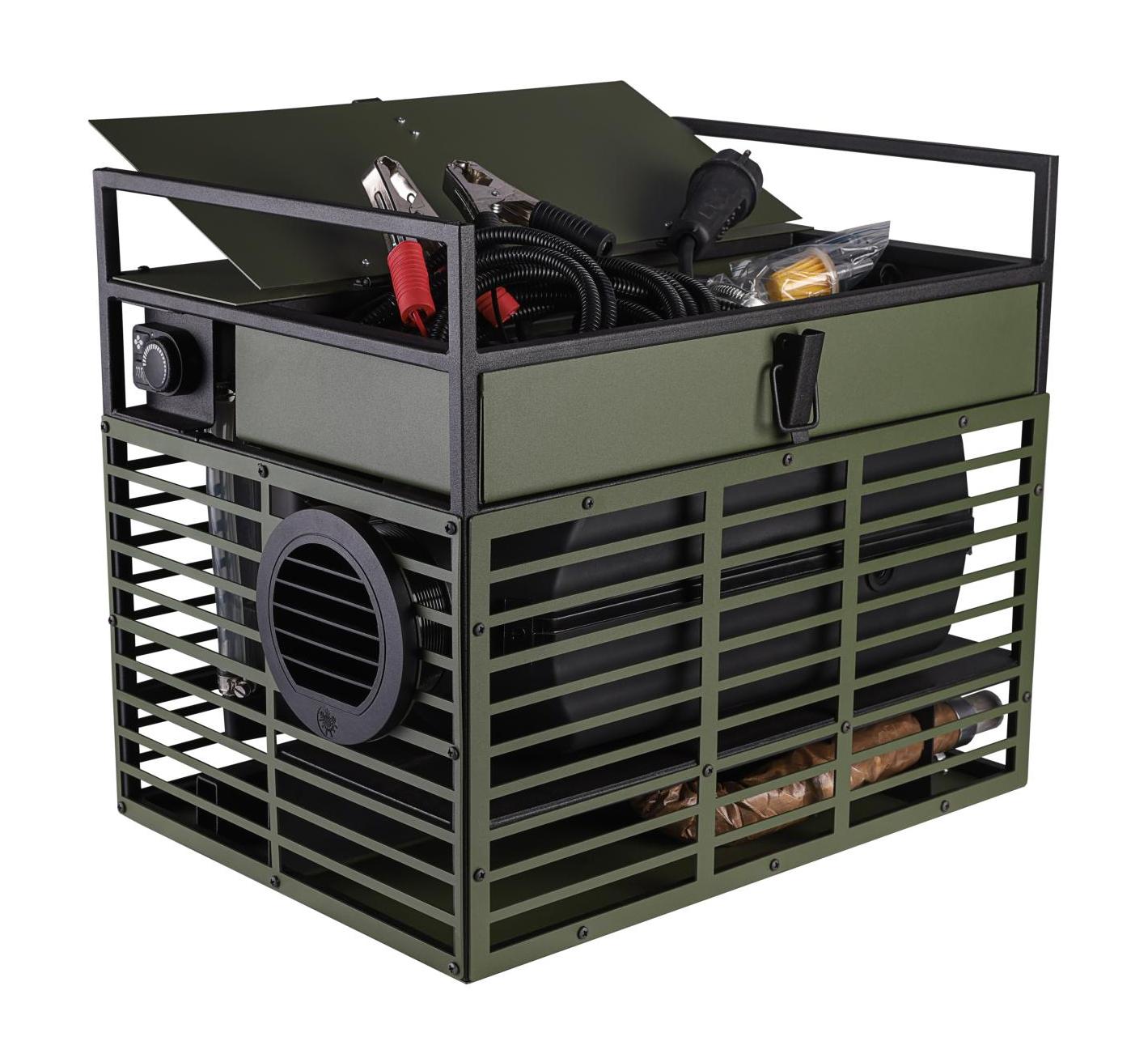 Состав комплекта: Отопитель, пульт управления, топливный насос, топливный бак, топливопровод, соединительные жгуты, воздухозаборник, выхлопная труба, жгут питания от аккумулятора, жгут питания 220В с сетевым адаптером.